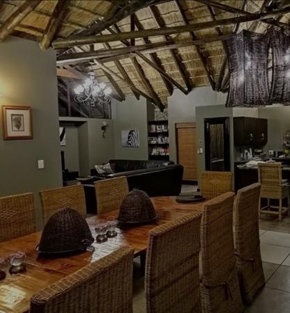 This syndicated share is a 13th share in Twitchers Nest lodge is fully equipped luxury private lodge in Black Rhino Game Reserve, a part of the PilanesbergGame Reserve. The share allows one the opportunity to visit 4 weeks per annum. The self-catering lodge sleeps 12 people including the ranger which is on site. It includes a game vehicle and a private guide for game drives into Big 5. The lodge consists of a main area with scullery, kitchen,lounge, bar, dining room and guest loo. There are 4 separate chalets with en-suite bathrooms and outside showers sleeping max x10 with 2 having lofts.There are x3 dedicated staff members employed guide, house-keeper and gardener. There is a hide to have your morning coffee.