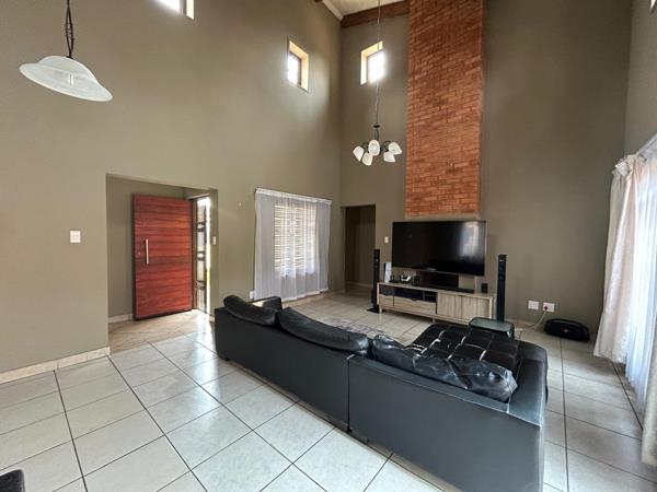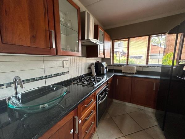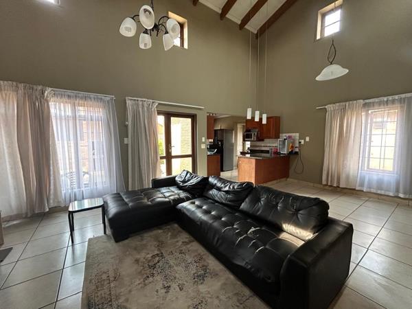 This beautiful home offers spacious open-plan living with a lounge, dining area and kitchen featuring cherry wood cabinetry, a gas hob and electric oven. A separate scullery and walk-in pantry make it ideal for comfortable family living.