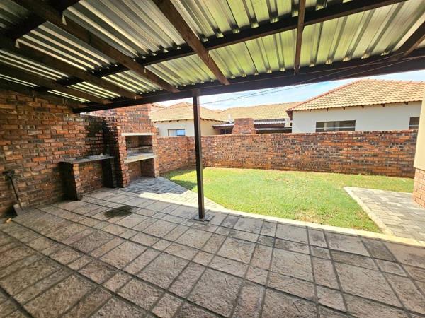 STATE OF TE ART UNIT IN OLIEN OP 4DE COMPLEX, A BEAUTIFUL FAMILY CRIB CONSISTS OF 3 BEDROOMS, ONE ENSUITE, 2 BATROOMS, SPACIOUS MODERN KITCEN, VERY SPACIOUS LIVING AREA DINING AND TV ROOM, SINGLE LOCK UP GARAGE, SINGLE COVERED CARPORT, PARKING SPACE IS AMPLE, BIGGEST YARD SPACE IN COMPLEX, STUNNING SWIMMING POOL, A LOVELY WATER FEATURE, FULLY PAVED, GARDEN VERY MAINTAINABLE AND EASY, FROM LIVING AREA IT LEADS YOU OUT TO A SPACIOUS COVERED ENTERTAINMENT AREA, BUILT IN BAAI TO ENJOY FAMILY TIME, AND PRIVACY YOU WANT , YOU WILL GET. TIS UNIT IS ON A CORNER STAND, IT ALLOWS BIGGER SPACE AND MORE PRIVACY LESS TRAFFIC, SINGLE STOREY FOR A PERFECT FAMILY, ALLOW ME TO MAKE YOUR DREAMS A REALITY!