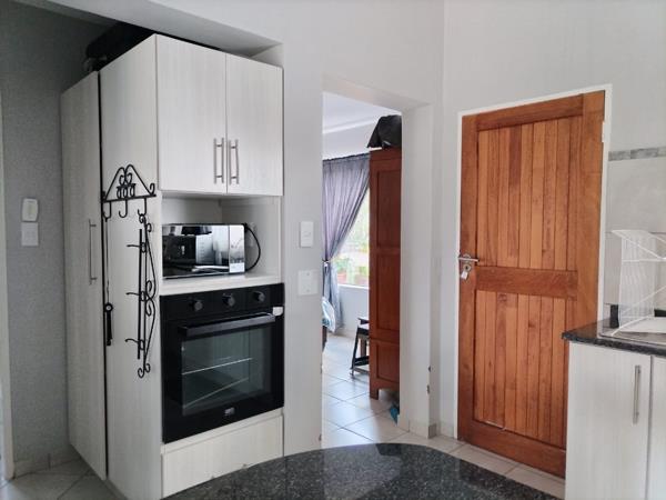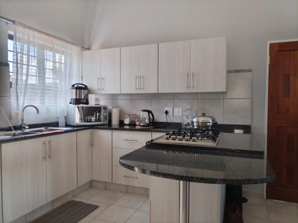 The home features a well-designed open-plan kitchen and lounge, creating a light-filled and welcoming living space. The kitchen is fitted with a gas stove and electric oven, ideal for effortless everyday cooking.