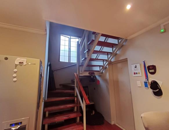 A versatile loft space with built-in cupboards, a shower, toilet, and basin can easily be used as an additional bedroom, office, or entertainment area.