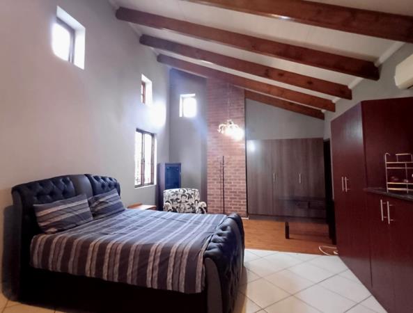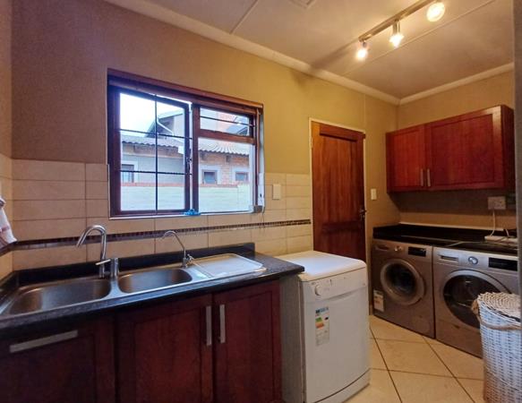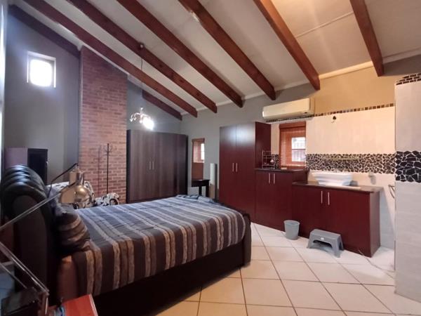 This beautiful home in Wedgewood Lofts Estate offers a spacious open-plan kitchen with wooden floors, a scullery, and a pantry. The lounge features a cozy fireplace and heated tiles, perfect for the winter season.