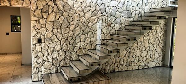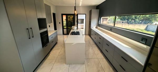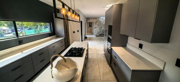 Downstairs, the home welcomes you with spacious open-plan living areas and an ultra-modern kitchen designed for both style and functionality. A guest bedroom with it''s own en-suite bathroom, an additional guest bathroom and a beautiful entertainment area with a built-in braai alongside the sparkling pool making this the ideal setting for hosting friends and family.