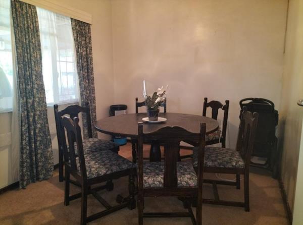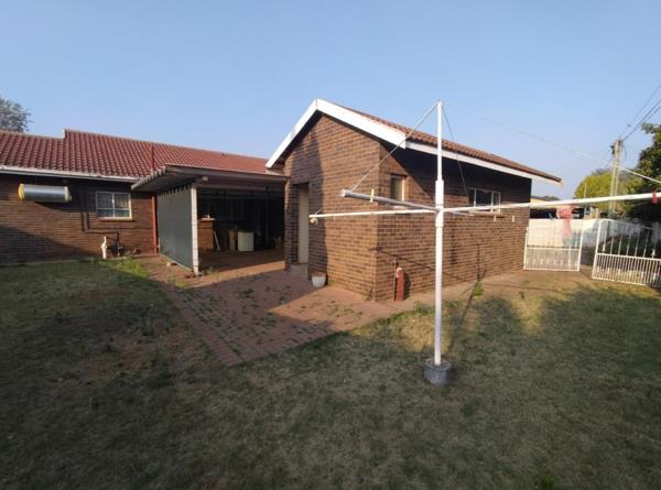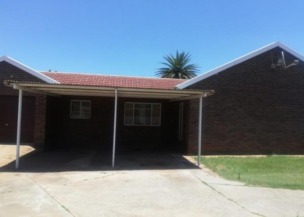 At the back of the house, alongside the kitchen is a storeroom, single garage and toilet. On either side of the back of the house are carports. The one at the back door has been closed on the side with shade net, turning it into a single carport, but serves much better as an outside entertainment area. A double steel carport is alongside the garage.