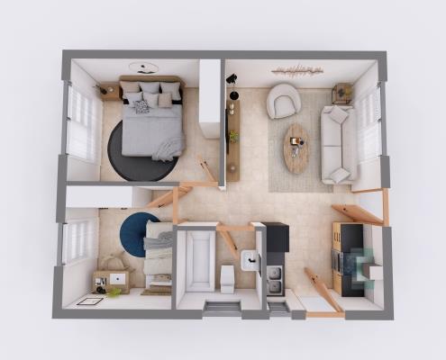 Living Space: Enjoy a cozy living room that serves as a perfect gathering spot for family or entertaining friends.