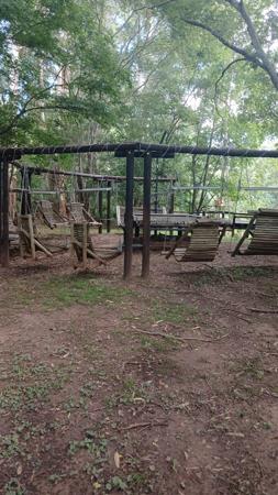 Outdoor living is a highlight, featuring a unique entertainment area with swing seats and a braai boma overlooking the river perfect for relaxed gatherings and quiet moments in nature.