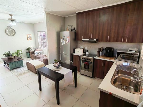Low maintenance and low levies. Safe and pet-friendly complex with electric fencing and a guard on night watch.