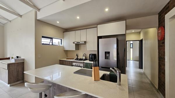 Modern, stylish and spacious home in the popular Winfield Estate. This full title home with high-end quality finishes boasts 3 bedrooms, 2 bathrooms (1 en-suite) and the spacious open plan living/dining/kitchen area are lit up by natural light. The kitchen features a separate scullery with place for 2 appliances.