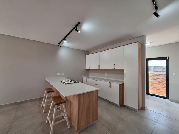 The home features 3 generously sized bedrooms and 2 stylishly appointed bathrooms. The heart of the home is a gourmet kitchen that boasts a large breakfast nook, ample cupboard space, a gas hob, an electric stove, and provisions for both a dishwasher and a washing machine. The property also includes a double door garage and a spacious garden, perfect for outdoor activities. Enjoy the built-in braai area with a shade net over the paved space, ideal for entertaining guests or relaxing with family. This Estate also offers two jungle gyms as well as a doggy park, perfect for letting your furry friends run free.