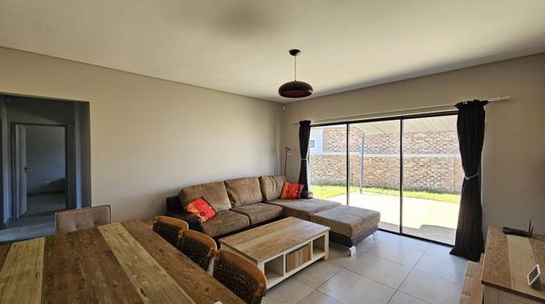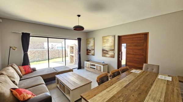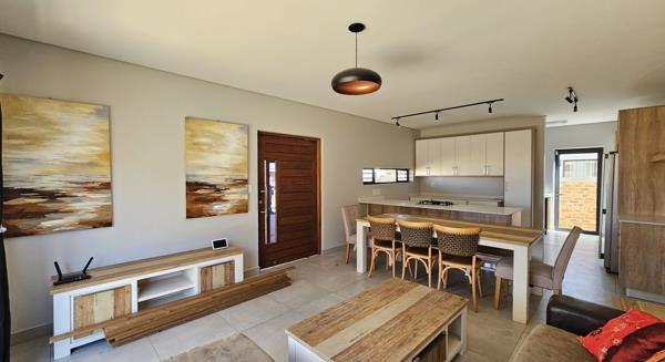 This modern smart home is situated in popular Birchwood Country Estate in Baillie Park. The house is designed with family living in mind and features an large open plan living/kitchen/dining area that walks out onto a covered patio with a built-in braai. This family home boasts 3 bedrooms, 2 bathrooms of which 1 is en-suite, a separate scullery, a double garage and a private, pet-friendly garden.