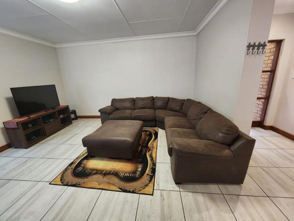 This low Maintenance house is designed for easy living, allowing you to enjoy your home without the hassle of extensive maintenance. The enclosed patio with a built-in braai is great for entertaining, and provide privacy when gathering with friends and family. The main bedroom and the living room are both fitted with air conditioners, ensuring comfort throughout. The main bedroom boasts an en-suite bathroom with modern finishes. The property is fully equipped with cameras and bugler bars at each window. With a double garage and enough parking for your friends and family this cab be a lovely home.