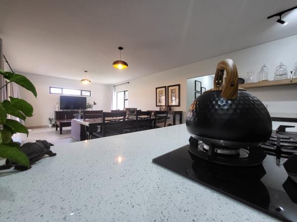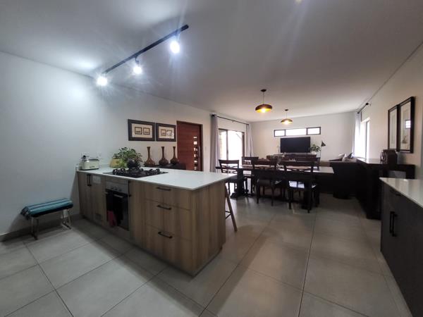Step inside to a light-filled open-plan living space featuring a beautifully designed kitchen with a 5-plate glass gas stove and separate scullery. The layout flows effortlessly into the dining and lounge area, creating the perfect setting for everyday living and entertaining.