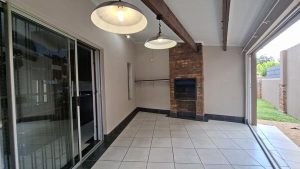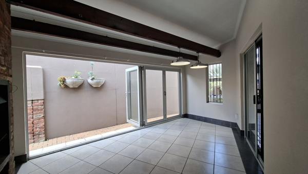 Perfect for entertaining, the home features a fully enclosed patio with a built-in braai, ideal for gatherings in both summer and winter. Step outside to a beautifully maintained, spacious garden, perfect for children and pets complex is pet-friendly, small dogs only.