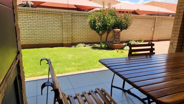 Step outside to discover a beautifully landscaped private garden, complete with a covered, enclosed patio entertainment area featuring a built-in braaiideal for hosting gatherings. The patio opens up to a refreshing small swimming pool, perfect for enjoying sunny afternoons. A secondary undercover patio at the back door enhances the outdoor living experience. This property also includes a convenient servant quarterstoreroom and an exterior toilet.