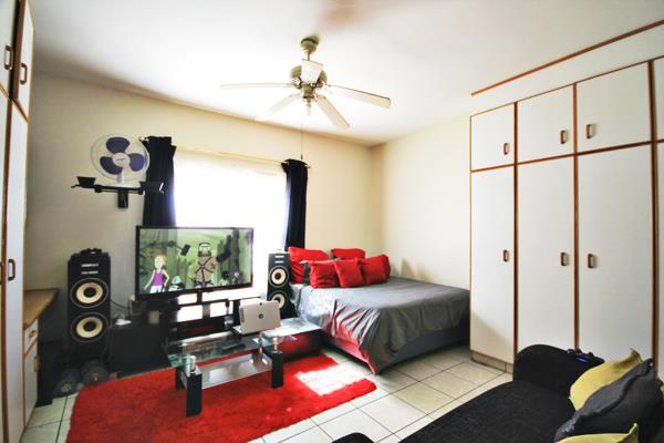 The bedroom area boasts ample space, allowing for comfortable living arrangements, and is enhanced with built-in cupboards, providing ample storage solutions to keep the space tidy and organized.