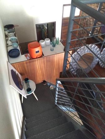 This loft unit offers a kitchen/lounge area on the first floor with a bathroom featuring a shower. A small balcony leads out from Lounge. Bedroom with built in cupboards upstairs.