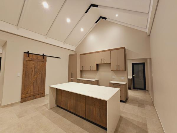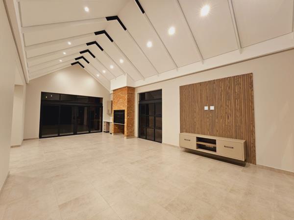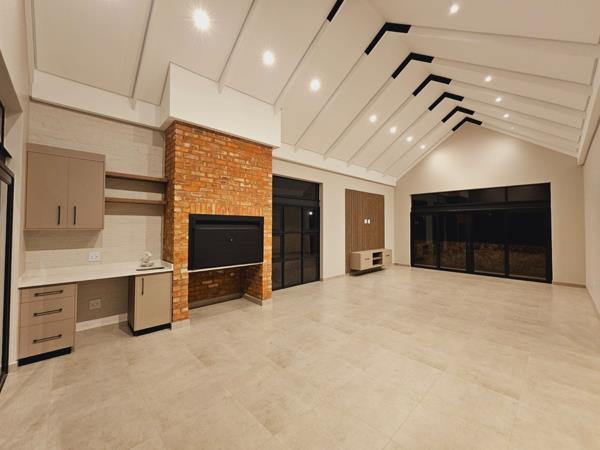 The home boasts 3 spacious bedrooms, 2 sleek bathrooms, and a double garage, thoughtfully complemented by a well-positioned storeroom and a convenient outside toilet. Every element has been designed with practical living in mind.