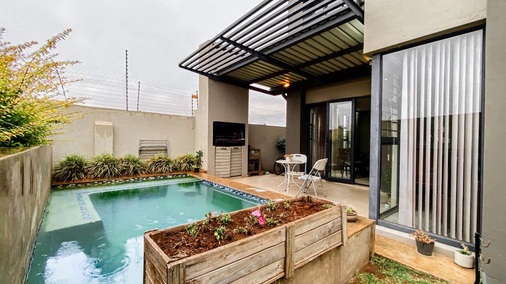 Exclusive Mandate. Nestled within the prestigious Tuscany Ridge Estate, this stunning residence is a testament to elegance and sophistication. Boasting spacious, open-plan living areas that seamlessly connect to a charming patio, this home is perfect for both entertaining and relaxation. The outdoor space features a built-in braai, offering the ideal setting for alfresco dining while overlooking your sparkling swimming pool.
