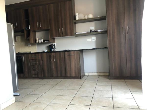 A modern and spacious apartment situated in a secure complex, featuring an open plan living area and kitchen with granite tops, hob and under counter oven, spacious bedroom with plenty of built-in cupboards as well as bathroom with shower, basin and toilet.