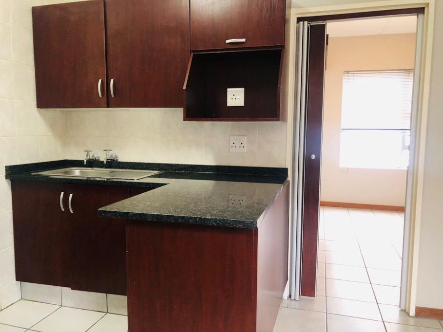 A modern and well-kept apartment consisting of an open plan living area and kitchen with stove, bedroom with en suite bathroom. Single secure under-roofed carport.