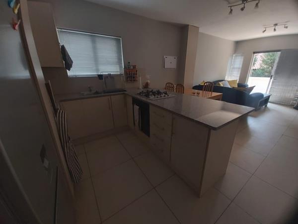 59m² 2 bedroom and 2 bathroom unit. Top-quality large porcelain tiles are used throughout the complex and all counter tops are granite with a lot of pale wood built-in cupboards in both kitchen and bedrooms and include many stunning features. Open plan lounge with sliding door leading to stoep. The kitchen is equipped with a gas hob and has a place for your washing machine.