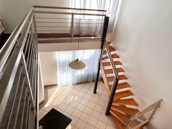 Upstairs, the loft area can be used as a second bedroom or a larger living area, adding to the apartment''s versatility.