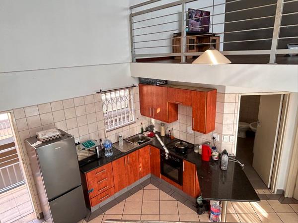 This spacious, sun-filled loft apartment offers an inviting and modern living space. The apartment features an open plan kitchen with a hob, under-counter oven, and extractor fan, seamlessly flowing into a cozy living area that leads to a balcony, providing extra room for relaxation. The bedroom includes built-in cupboards, and the bathroom is fitted with a bath, basin, and toilet.