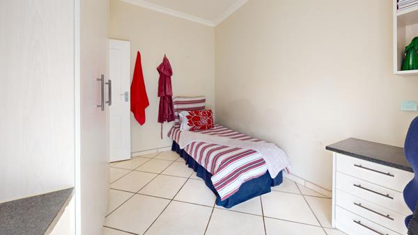 This 2-bedroom, 1-bathroom apartment features an open-plan kitchen and living area, creating a comfortable and functional space. The bathroom includes both a bath and shower, while the private balcony offers a peaceful outdoor retreat. Apartment owners have access to two parking spaces, and the complex is equipped with loadshedding lights for added convenience. Located in a secure complex, it provides easy access to shops, schools, and main roads.