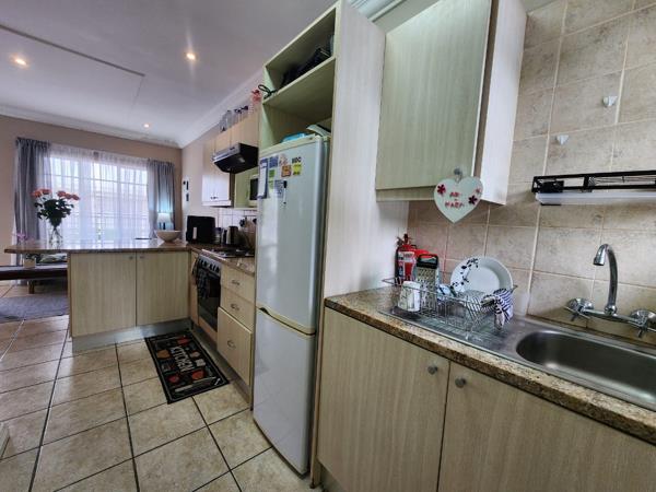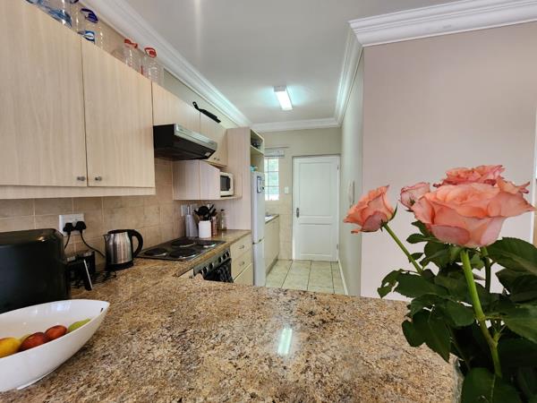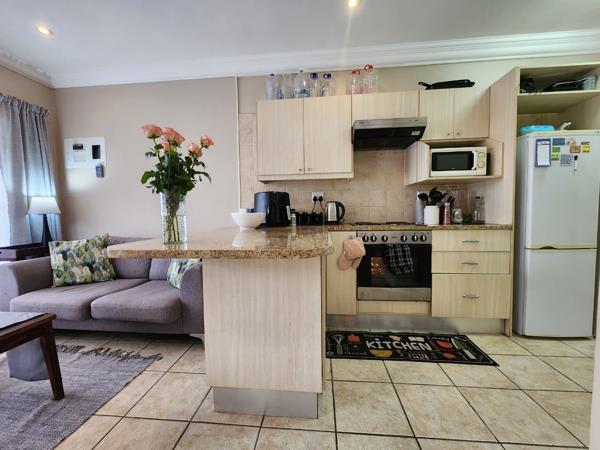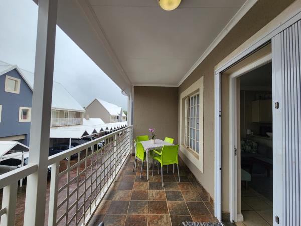 Key features include: 2 spacious bedrooms, 1 modern bathroom, open-plan living and kitchen area, spacious balcony, 1 covered parking bay, communal pool, and braai area for relaxation and entertainment.
