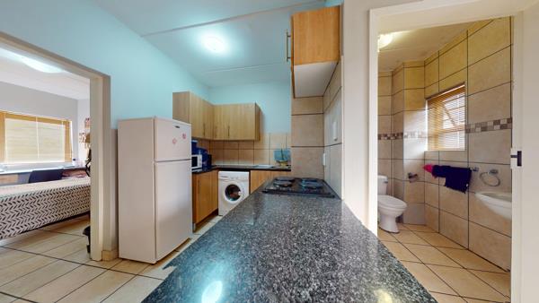 * Secure sectional-titled complex with access control, private veranda, 2 parking bay, communal braai area. It serves student rentals, including braai, WiFi access, and a parking bay. Great for first-time buyers or investors.