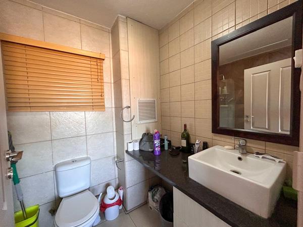 The bedroom is equally inviting, featuring the same sleek laminated flooring, generous built-in cupboards, and a pristine en suite bathroomdesigned to provide both comfort and functionality.