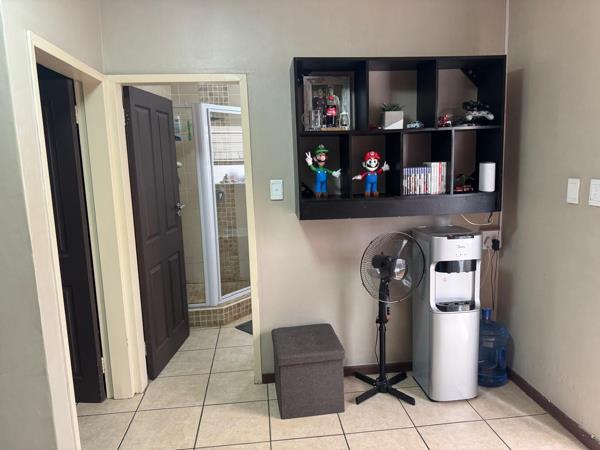 Beautifull spacious 1 bedroom apartment with open plan lounge, kitchen and study area. Ground floor unit with a spacious bedroom and build-in cupboards. Full bathroom with a bath and separate shower. Backdoor lead to a lovely outdoor area. Covered parking in a secured complex near NWU and shops.