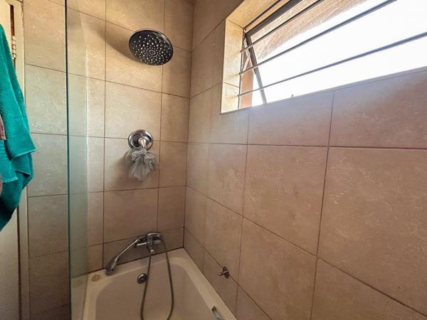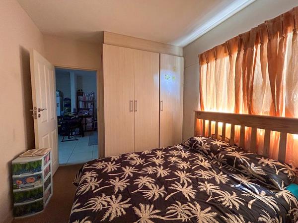 The bedroom is well-appointed with built-in cupboards and complemented by an en suite bathroom for added convenience and privacy.