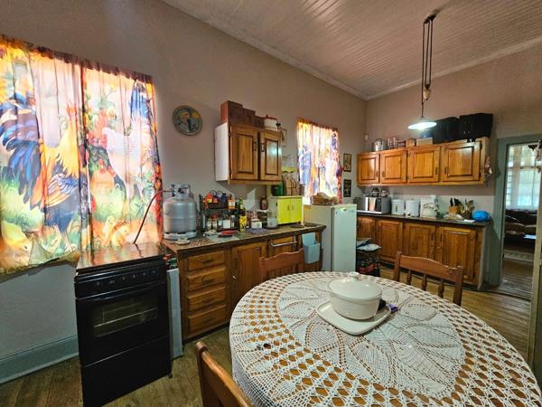 The existing front house can easily be converted into student accommodation, offering immediate rental income while the rest of the stand is developed. The home features a welcoming entrance hall, a spacious lounge, and a functional kitchen with built-in cupboards, an eye-level oven, a classic coal stove, and a separate laundry area. There are three well-sized bedrooms, a bathroom with a separate toilet, original wooden floors, and high ceilings that add old-world charm. A large patio provides a peaceful outdoor space for relaxation.