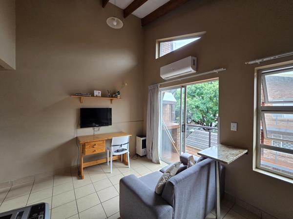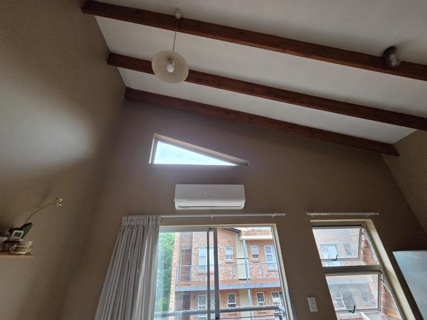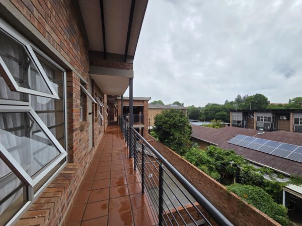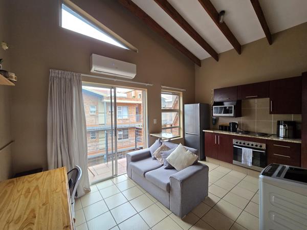 This beautifully finished one bedroom corner apartment is located on the second floor of a popular complex only a stones throw from the Jooste Street entrance of the NWU. This quaint apartment features an open plan lounge and kitchen with vaulted ceiling, exposed beams, air conditioner and glass sliding door leading onto a private balcony with braai. The kitchen has granite tops, an undercounter oven and hob and ample built in cabinets.
