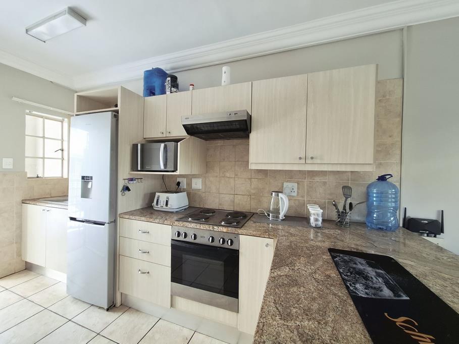 Both bedrooms offer ample space and built-in cupboards, while the bathroom is neat, functional, and well-maintained. The kitchens practical design complements the light-filled living space, giving the unit a warm and inviting atmosphere.