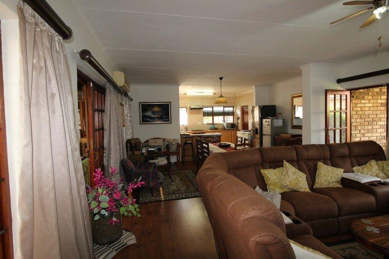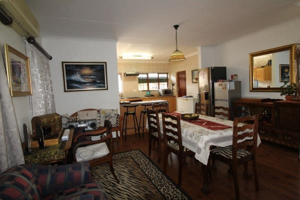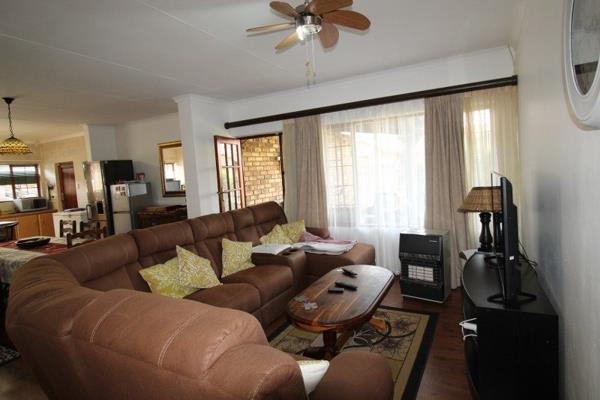 As you step inside this charming residence, you will discover a total of 3 spacious bedrooms, each thoughtfully equipped with built-in cupboards. There are 2 full bathrooms, one of which is an en-suite, ensuring convenience and privacy. The heart of this home is a welcoming open-plan lounge and dining area, creating a perfect space for relaxation and gatherings.