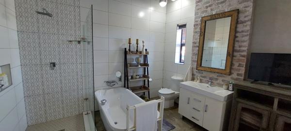 The living room has a cozy feeling with the fireplace perfect for cool winter days in Potchefstroom.