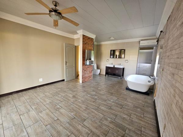Outside, the beautifully large garden and a small dam provides endless opportunities for children to play, pets to roam and a braai area and boma for family barbecues under the open sky. The sparkling swimming pool promises hours of summer fun, while the three-car garage offers ample parking and storage space.