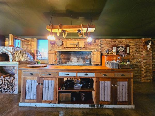 The heart of the home is the well-appointed kitchen with a separate scullery and pantry, perfect for culinary enthusiasts. The expansive entertainment area is a standout, complete with a built-in braai, pizza oven, and coal stove, making it ideal for hosting gatherings.