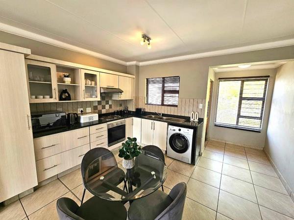 The open-plan layout flows effortlessly from the contemporary kitchen into the dining and living areas, creating a welcoming space for both relaxation and entertaining. Step out onto your private balcony, complete with a built-in braai, and enjoy the luxury of estate views while hosting family and friends.