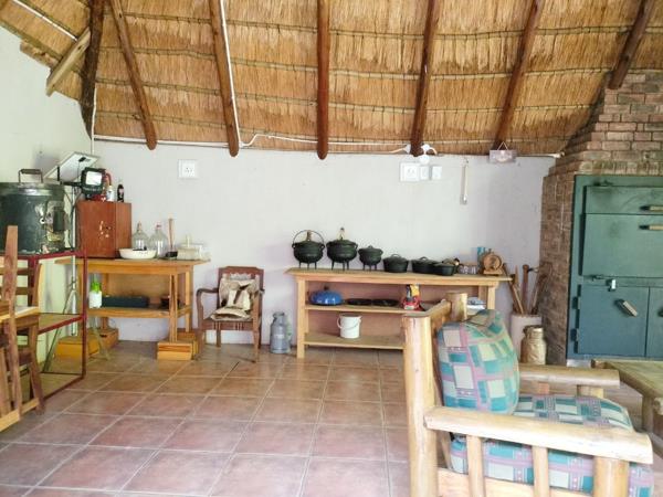 Grass Roof Lapa & Braai Area ideal for outdoor dining, birthdays, and weekend braais.