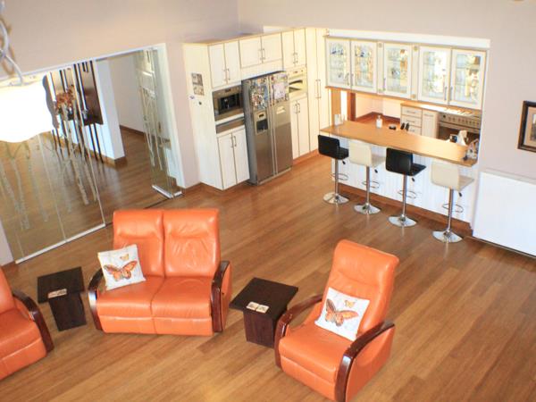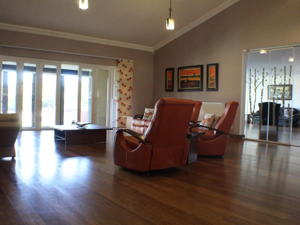 Year-round comfort is ensured by a central heating system, as well as both gas and electric geysers. Unique features such as bamboo flooring, a bamboo staircase, and bamboo countertops add a warm and distinctive character to this stunning home.