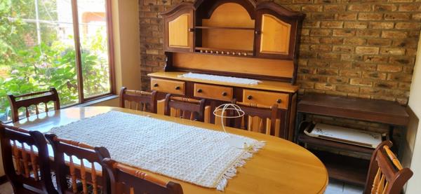 The main house features four generously sized bedrooms with built-in cupboards, two well-appointed bathrooms (One is a full en-suite bathroom), spacious dining room, a comfortable lounge, and a dedicated study. The spacious kitchen is equipped with elegant granite countertops and includes a separate scullery and laundry area for added convenience. For enhanced comfort, the home is fitted with two air-conditioning units to ensure a pleasant atmosphere throughout the year. There is another living room/TV-room as well to entertain guests.