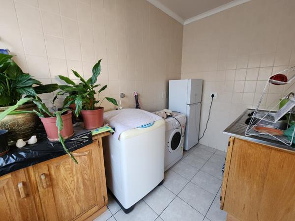 Step inside to find a spacious open-plan lounge and dining area that flows effortlessly through a sliding door to a beautifully landscaped gardenperfect for both relaxation and entertaining. The well-equipped kitchen boasts ample cupboard space and dedicated areas for a dishwasher, washing machine, and a chest freezer, catering to all your culinary needs.