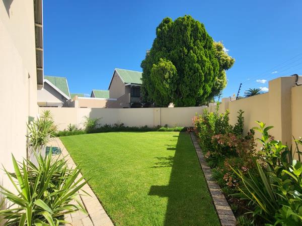 Elegantly designed 3 bedroom townhouse nestled within a secure complex. This home features 2 bathrooms for convenience, a fully equipped kitchen, and a spacious living room. Ample cupboard space throughout offers plenty of storage options. Step outside to a well maintained, pet-friendly garden with a built-in braai area and patio, perfect for relaxing or entertaining.