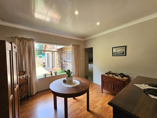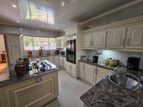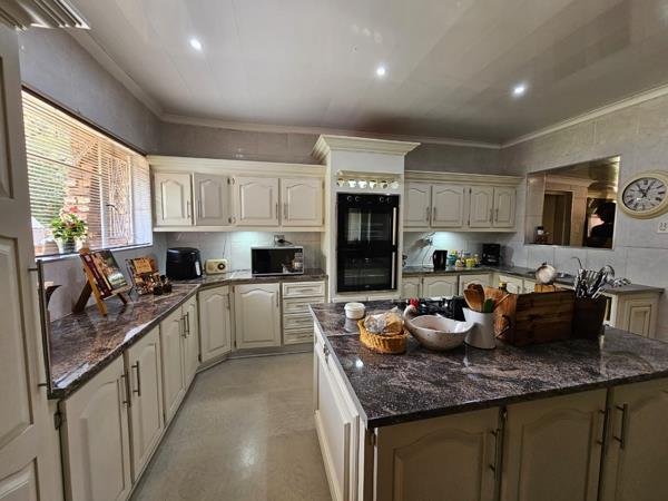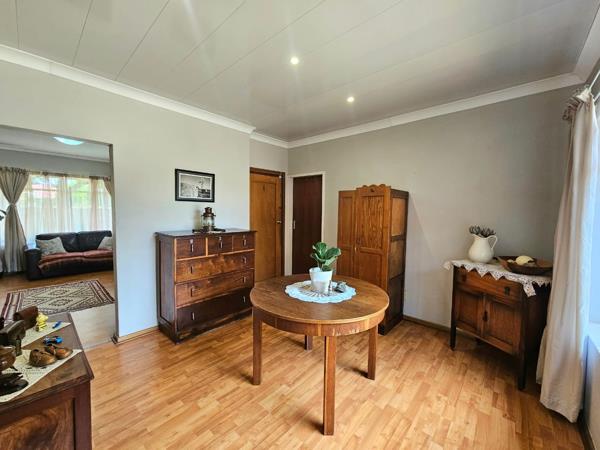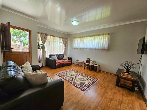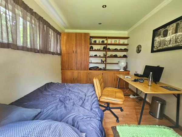 The entertainment area with built-in braai opens through sliding doors to the garden, perfect for easy indoor-outdoor living. A separate, fully renovated scullery and laundry keep the home practical and organised.