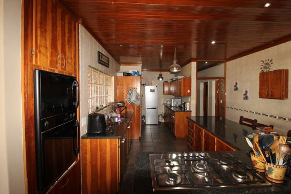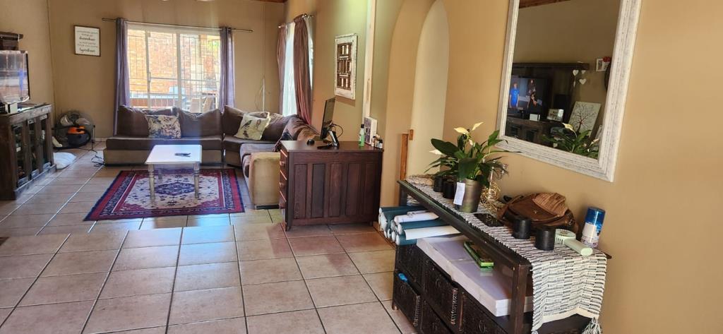 Outdoor amenities further enhance this property and include a well-maintained garden equipped with an irrigation system, a braai area with a built-in braai, and a swimming pool ideal for family enjoyment. Parking and security are well catered for with a double garage, double carport, electric gate, CCTV system, and a fully fenced yard.