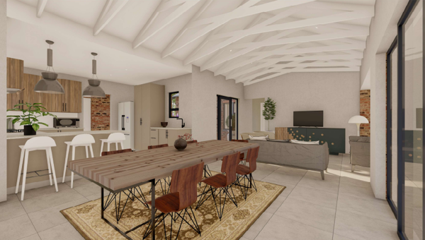 This thoughtfully designed house boasts open-plan living spaces, offering a seamless flow of natural light and airiness throughout. With three spacious bedrooms and two elegantly appointed bathrooms, it provides comfortable living for families or professionals.