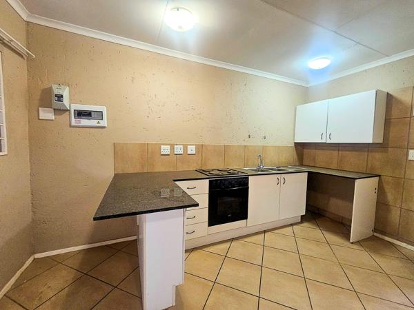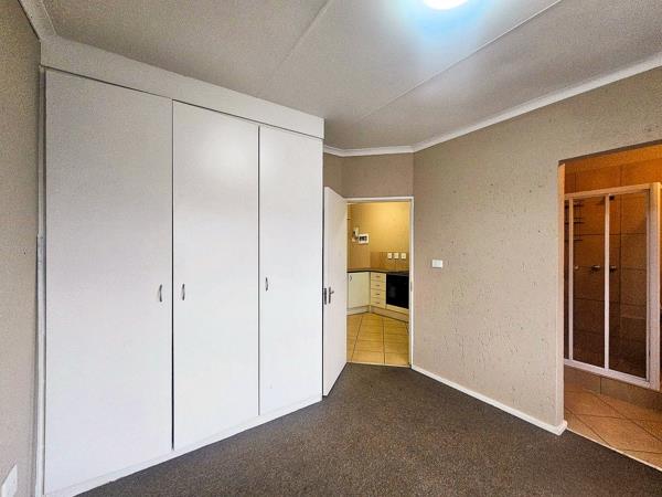 This charming one-bedroom apartment is perfectly situated in the sought-after Waterberry Estate, offering both comfort and security in a serene environment. The apartment features a welcoming open-plan living area that seamlessly connects to a well-designed kitchen, complete with ample built-in cupboards for all your storage needs.